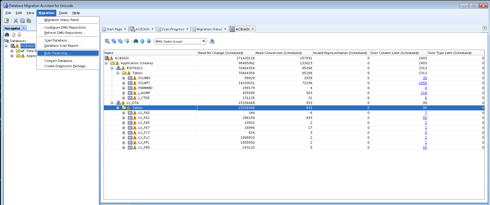 For invalid representations, you will need to right click a table and choose “Cleansing Editor”. The characters with issues will appear as small squares. You can edit data so as to fix invalid representations.