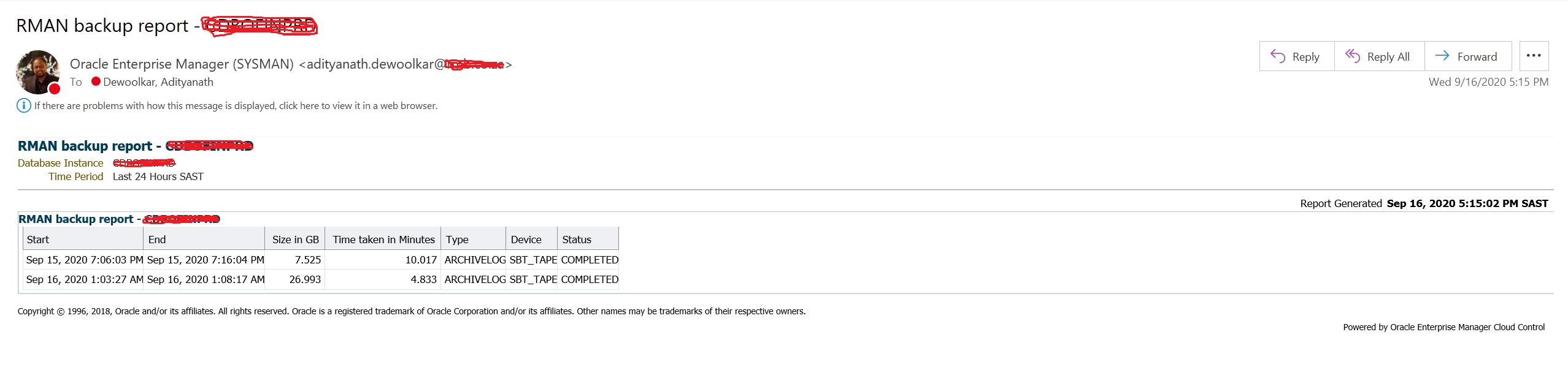 Recently one of BU person in my project requested us to send scheduled report for RMAN Backup completion for one of critical databases. As this requirement was from Business, I thought of having it simple & less techie. After exploring few options, I thought of using OEM reporting functionalities & found its really amazing.