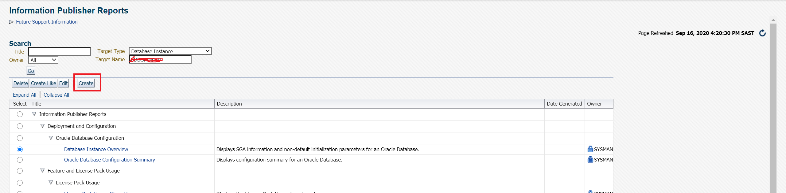 3. This is landing page for Information Publisher Reports. Click on “Create”.