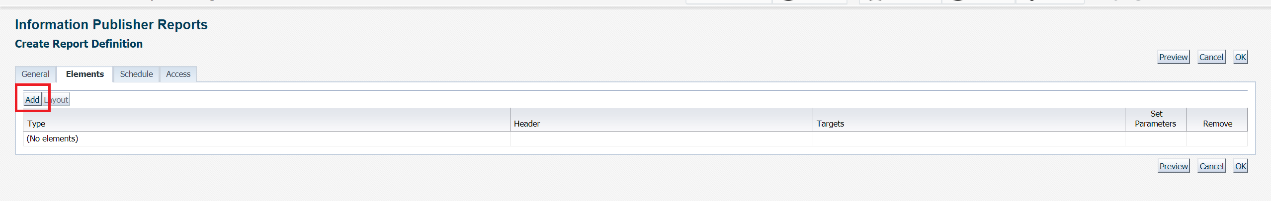 4. Report creation basically has 4 steps: General, Elements, Schedule, Access.