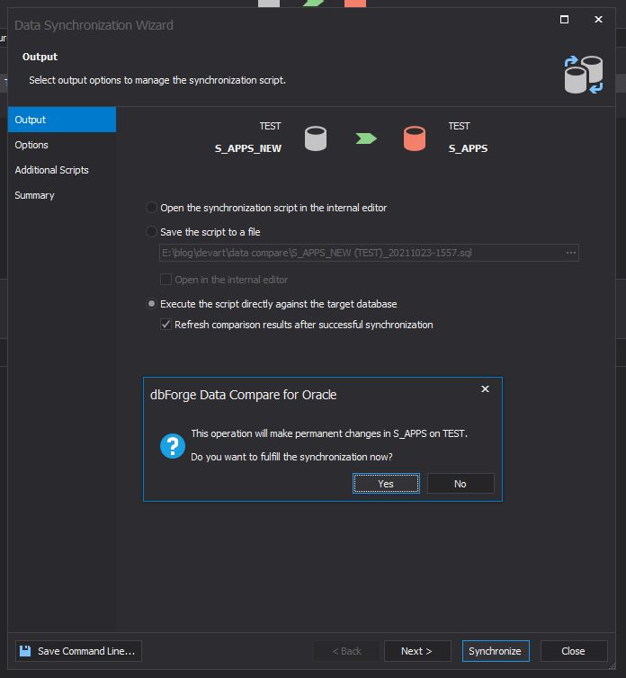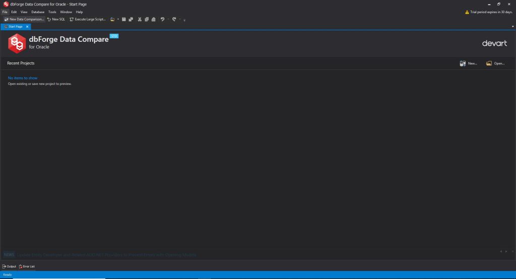 Once schema structures are in sync. We can go ahead with DATA sync. This section will cover identifying & applying DATA changes in two schemas. Start application named “dbForge Data Compare for Oracle”.