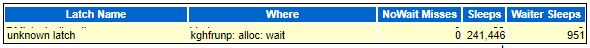 ASH views also shown max wait time with no sql_id, so I was assuming there must be some bug in 19C causing this. After having a look in latch statistics miss resource, I found a entry with label “unknown latch: kghfrunp: alloc: wait” with maximum sleep counts. I found some MOS documents which confirmed this was related to shared pool.