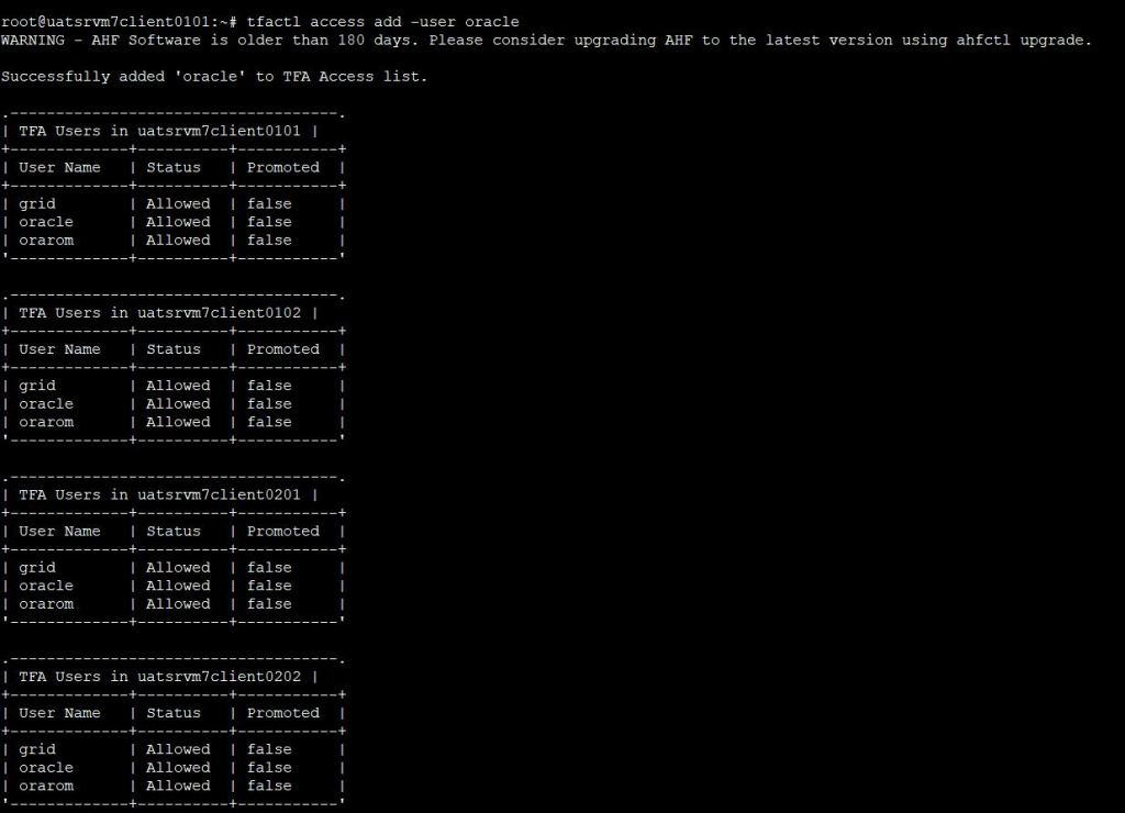 As shown in above diagram OS user Oracle was not enabled for TFACTL on node 1 which was causing this issue.