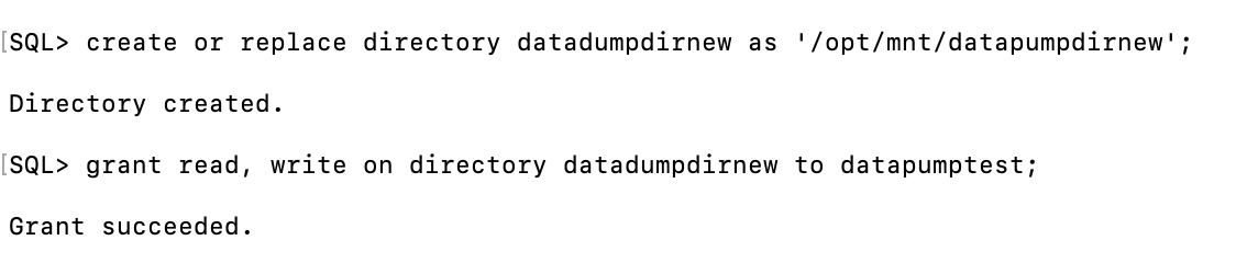 SQL> create or replace directory datadumpdirnew as '/opt/mnt/datapumpdirnew';