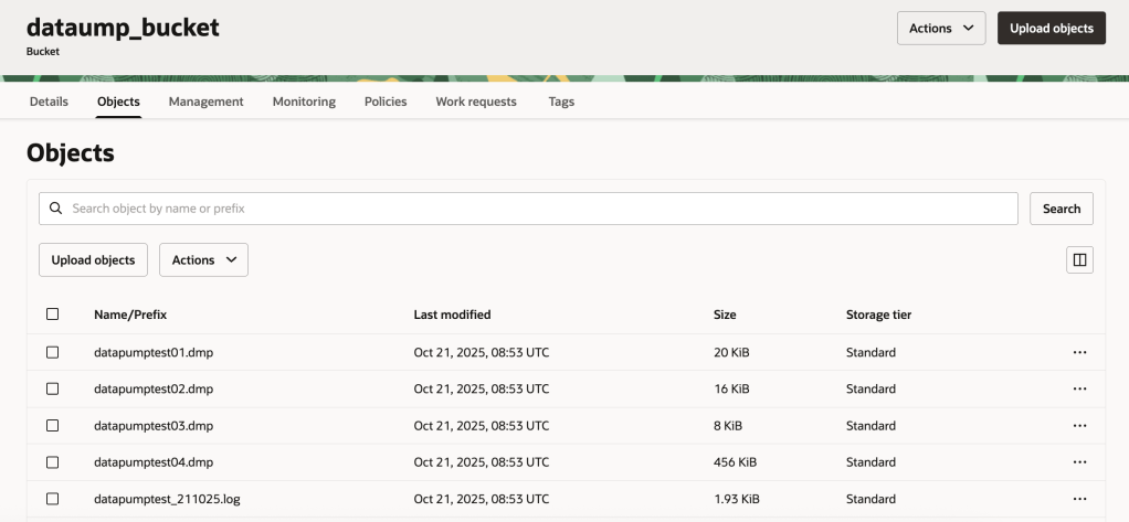 Step 8: Verify if we can see datapump dumpfiles in object storage bucket