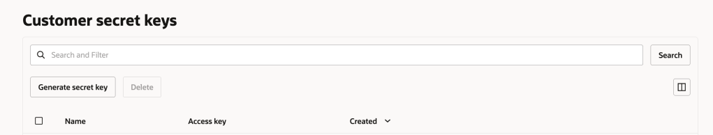 Create a password file that contains your Secret Key and Access Key from the previous step, both in one line, separated by a colon in OPC home directory.