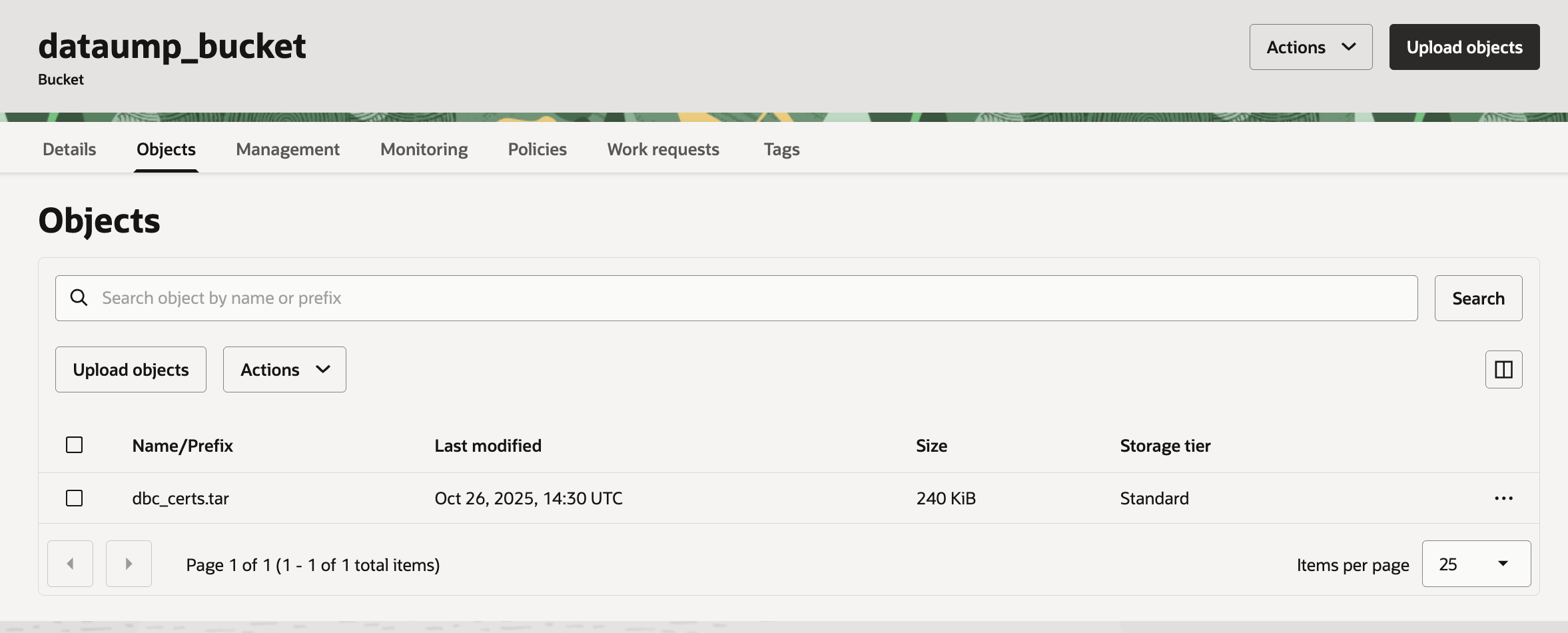 Since all Object Storage access happens over HTTPS, the database must trust the certificates of the target locations. To achieve this, you’ll need to create a security wallet that stores these certificates.