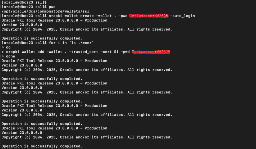 Now lets create a wallet and load the certificates. You can set the wallet password – something more secure for your installation.