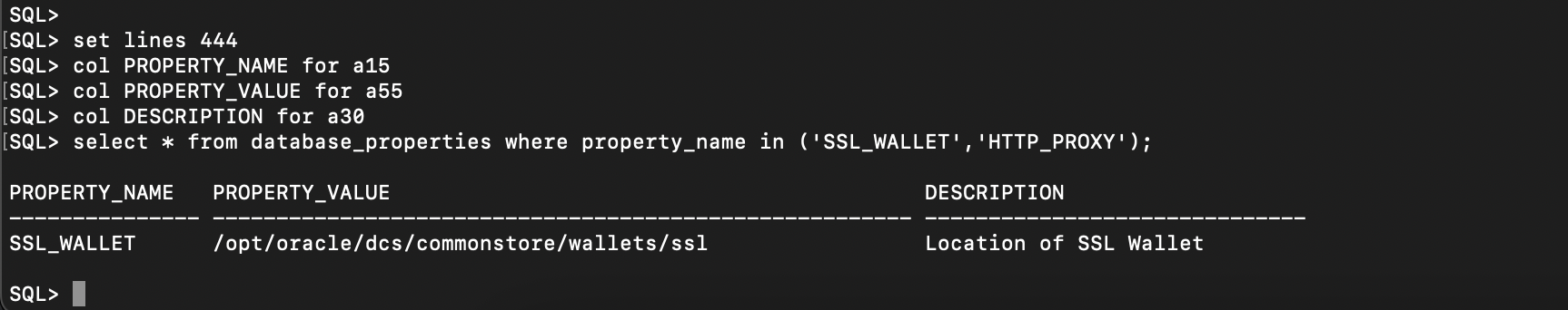 select * from database_properties where property_name in ('SSL_WALLET','HTTP_PROXY');