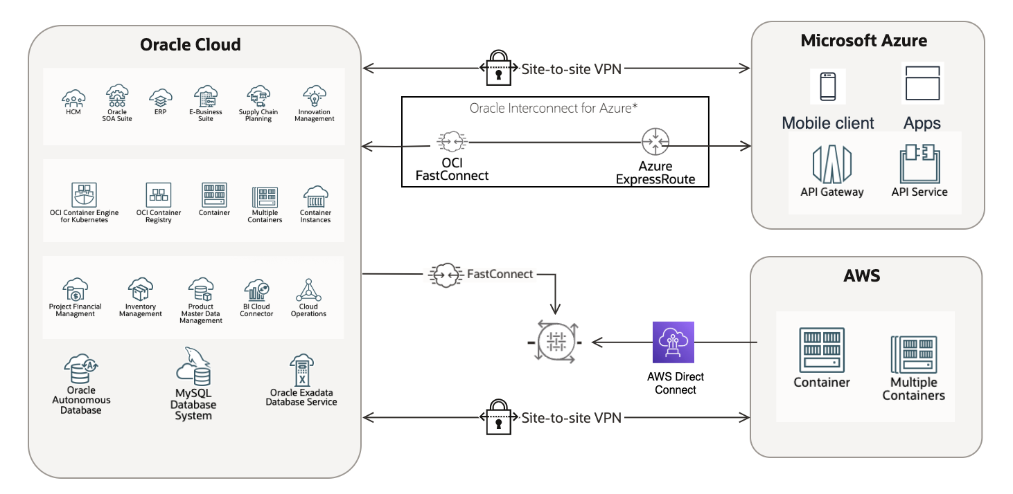 OCI multicloud services empower organizations to leverage multiple cloud environments for optimal cost efficiency, functionality, and performance. OCI uniquely supports modernization of databases and applications with solutions like Exadata, Oracle Real Application Clusters, and Oracle Autonomous Database—services not found with other cloud providers. Strategic partnerships with Microsoft Azure, Google Cloud, Amazon Web Services, and others enable you to combine Oracle’s distinctive capabilities with leading services from a broad ecosystem of cloud providers.